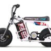 | Frame construction | High strength steel, powder coated, removable motor plate, integrated chain tensioner, loop tail design, quick release battery system, 2-point foot peg position mounts, stunt peg compatible. |